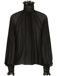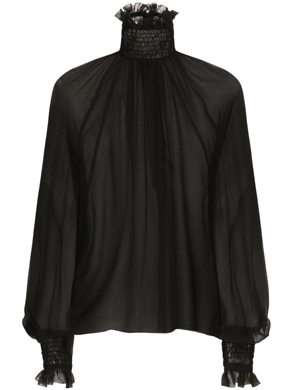 high-neck sheer silk blouse Highlights - Black - Silk - Sheer - Frilled high neck - Long sleeves - Fitted-cuff sleeves - Straight hem Made in Italy Composition Silk 100% Washing instructions Read Manufacturer Guidelines