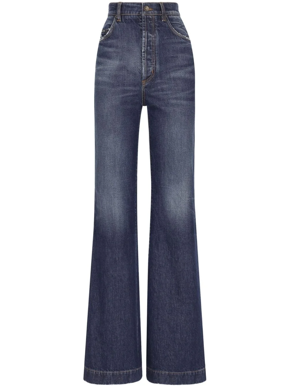 high-rise flared jeans Highlights - Indigo-blue wash - Cotton denim - Flared - Logo plaque - High waist - Belt loops - Front button and zip fastening - Classic five pockets Made in Italy Composition Cotton 100% Washing instructions Read Manufacturer Guidelines