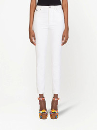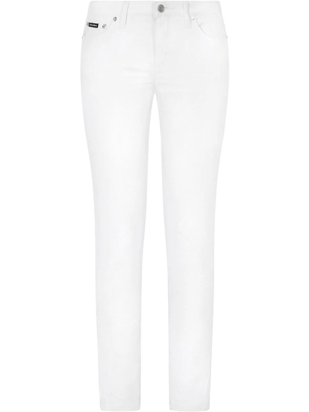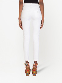 logo-applique skinny jeans The right denim can transform your wardrobe. With a skinny fit, these high-rise jeans from Dolce & Gabbana are your go-to option for everyday wear. Casual style couldn't be easier. Highlights - White - Stretch-cotton denim - High waist - Belt loops - Front button fastening - Classic five pockets - Skinny cut Made in Italy Composition Cotton 98%, Spandex/Elastane 2% SIZE & FIT Measurement FRONT RISE 10.23 in(26 cm)