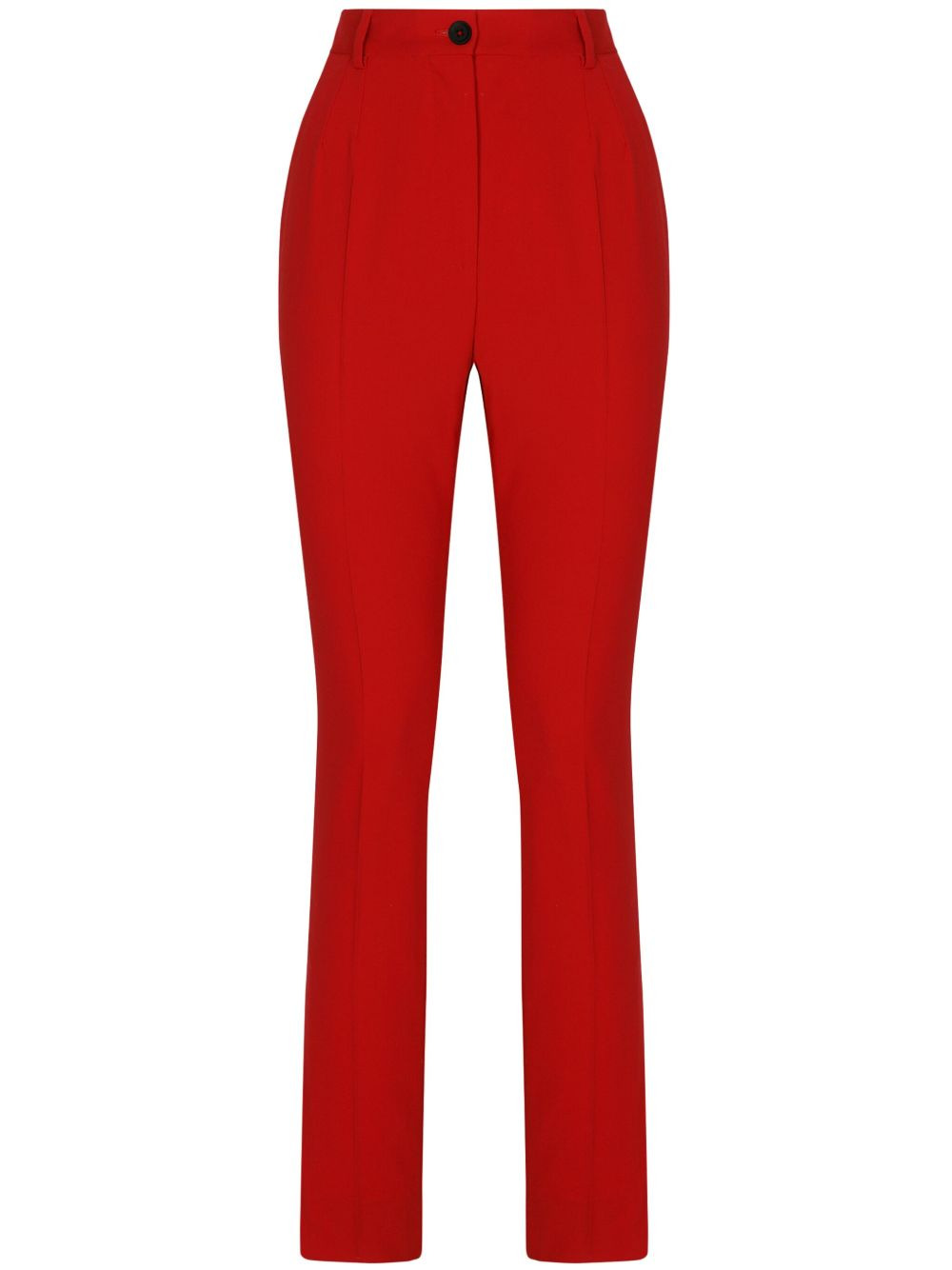 high-rise straight trousers Highlights - Flame red - Stretch-virgin wool - High waist - Front button and zip fastening - Straight leg - Two side slit pockets Made in Italy Composition Virgin Wool 98%, Elastane 2% Washing instructions Read Manufacturer Guidelines