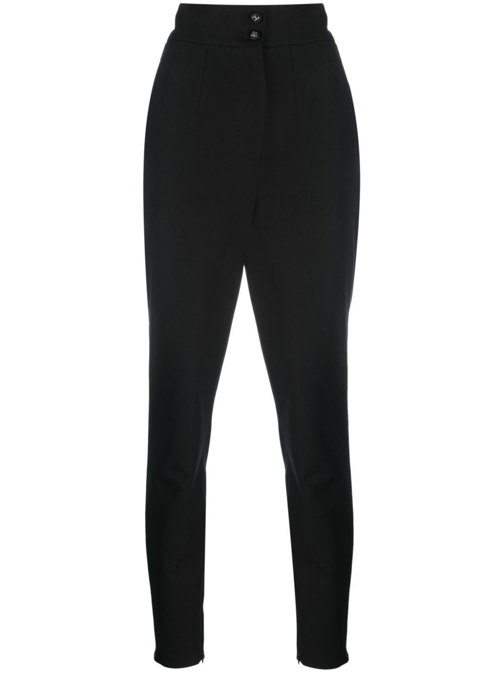 high-waist slim-cut trousers Highlights - Black - Stretch-cotton - Slim cut - High waist - Front button and zip fastening - Two side inset pockets - Ankle zips Made in Italy Composition Cotton 94%, Elastane 6% SIZE & FIT Model measurements Height 5 ft 9 in(1.75 m) Bust/Chest 33.07 in(84 cm) Hips 35.03 in(89 cm) Waist 24.01 in(61 cm) Measurement INSIDE LEG 29.13 in(74 cm) HIPS 34.64 in(88 cm) WAIST 27.55 in(70 cm) FittingInformation Designed for a slim fit, these trousers offer a close fit at the waist, allowing a comfortable close fit and some movement over the leg The zipped hems allow you to adjust the fit throughout the calves and ankles Made from a midweight stretch fabric, this piece offers elasticity and flexibility when worn This piece fits true to size – take your usual size Washing instructions Dry Clean Only
