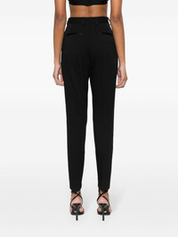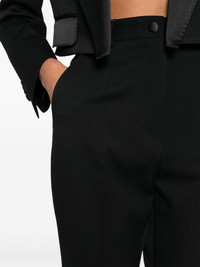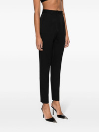 high-waist slim-fit trousers Highlights - Black - Virgin wool-silk blend - Gabardine weave - High waist - Belt loops - Two side slash pockets - Dart detailing - Pressed crease - Ankle-length - Ankle zips - Two rear welt pockets - Slim cut - Fabric-covered buttons - Concealed fly and button fastening Made in Italy Composition Virgin Wool 95%, Silk 3%, Polyester 2% SIZE & FIT Model measurements Height 5 ft 11 in(1.8 m) Bust/Chest 30.7 in(78 cm) Hips 35.03 in(89 cm) Waist 24.4 in(62 cm) FittingInformation Designed for a slim fit, these trousers offer a close fit at the waist, allowing a comfortable close fit and some movement over the leg Made from a midweight non-stretch fabric This piece fits true to size – take your usual size