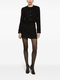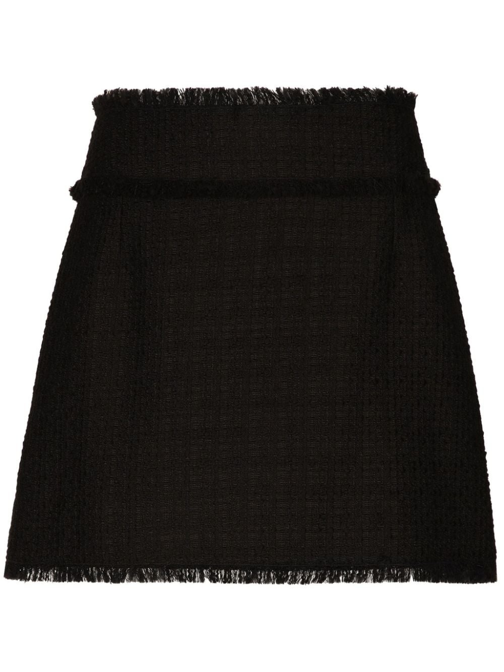 high-waist tweed miniskirt This Dolce & Gabbana skirt is cut from a sumptuous wool-blend tweed to a high waist and mid-thigh length. It's finished with whiskering frayed trims and rendered in a sleek black hue. Highlights - Black - Wool blend - Tweed - Frayed detailing - High-waisted - Concealed rear fastening - Straight hem Made in Italy Composition Lining: Polyester 97%, Spandex/Elastane 3% Outer: Wool 93%, Polyamide 7% SIZE & FIT Measurement LENGTH 16.14 in(41 cm) WAIST 28.34 in(72 cm) HIPS 36.61 in(93 cm)
