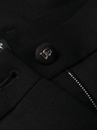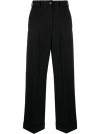 high-waist wide-leg trousers Dolce & Gabbana blends sophistication with relaxed tailoring to create these trousers. Crafted from a soft blend of wool with a hint of stretch, this black pair sits high at the waist and falls to a comfortable wide leg. Made in Italy Composition Wool 97%, Spandex/Elastane 3% SIZE & FIT Model measurements Height 5 ft 10 in(1.78 m) Bust/Chest 29.92 in(76 cm) Hips 34.64 in(88 cm) Waist 23.62 in(60 cm) Measurement INSIDE LEG 33.07 in(84 cm) HIPS 39.37 in(100 cm) WAIST 30.7 in(78 cm) FittingInformation This piece fits true to size. We recommend you get your regular size Designed to be fitted at the waist and hips, loose over the leg Made with a mid-weight stretch fabric