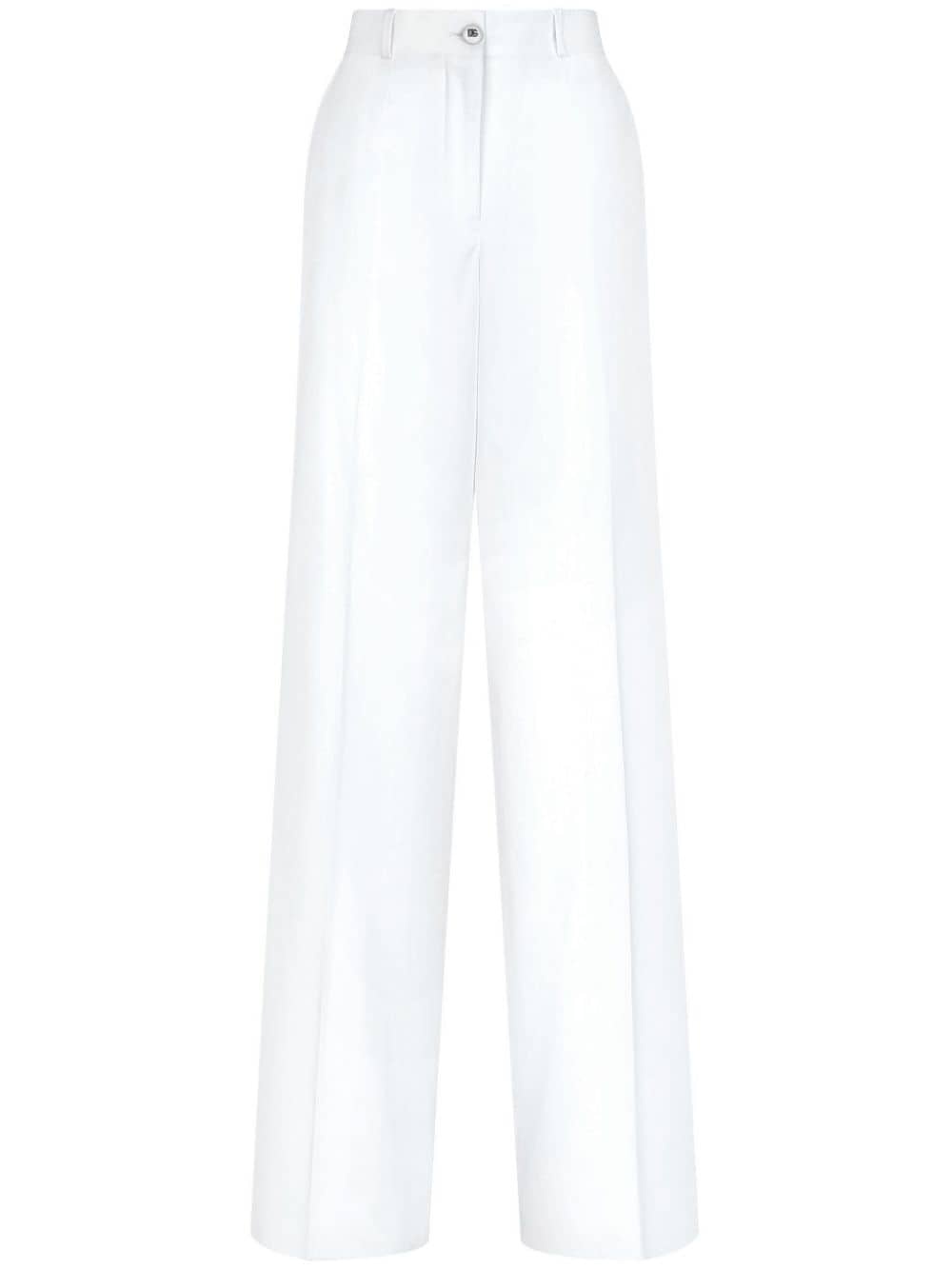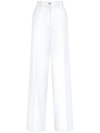 high-waisted cotton-blend pallazo pants Highlights - White - Stretch-cotton - Pressed crease - Front button and zip fastening - Belt loops - Two rear welt pockets - High-waisted - Palazzo design - Long length Made in Italy Composition Cotton 97%, Spandex/Elastane 3% Washing instructions Read Manufacturer Guidelines