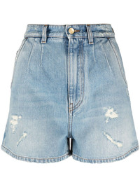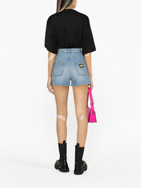 high-waisted denim shorts Dolce & Gabbana's denim shorts sit high at the waist and are enhanced with ripped detailing that lends it a street-style feel. Highlights - Light blue - Cotton - Denim - Ripped detailing - Gold-tone logo plaque - High-waisted - Belt loops - Button fly fastening - Two side slit pockets - Two rear patch pockets Made in Italy Composition Cotton 100% SIZE & FIT Model measurements Height 5 ft 10 in(1.77 m) Bust/Chest 32.67 in(83 cm) Hips 35.43 in(90 cm) Waist 23.62 in(60 cm) FittingInformation Designed for a close fit throughout Sturdy and hard-wearing, this denim piece offers no stretch This piece fits true to size – take your usual size