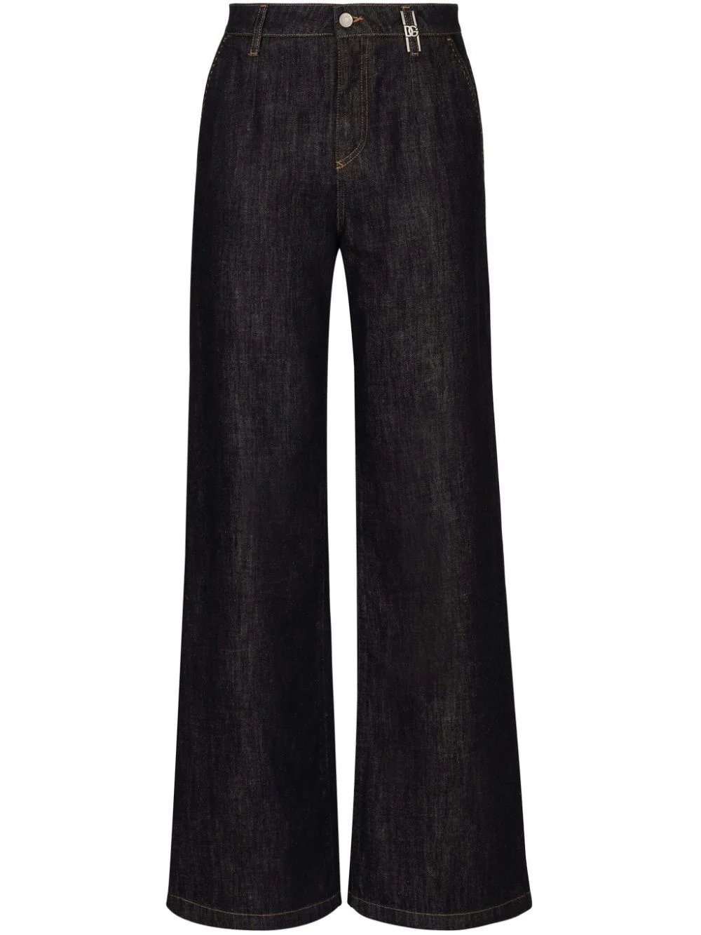 high-waisted flared jeans Highlights - Dark blue - Cotton - Denim - Flared leg - High-waisted - Embroidered logo - Belt loops - Front button and zip fastening - Two side slit pockets - Floor-length Made in Italy Composition Cotton 100%