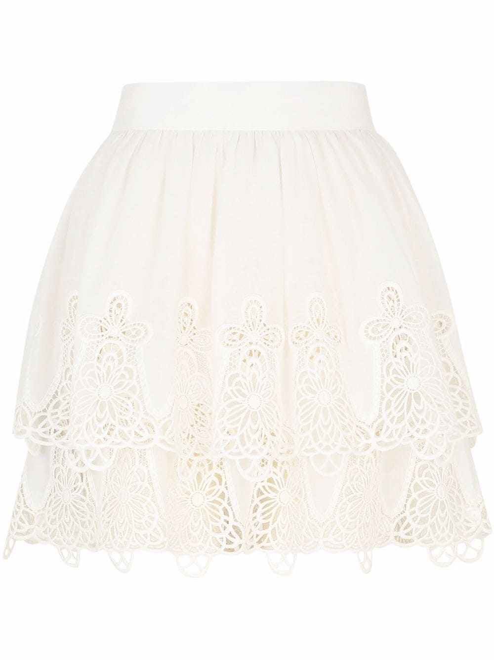 Ruffled embroidered cotton miniskirt