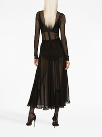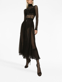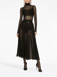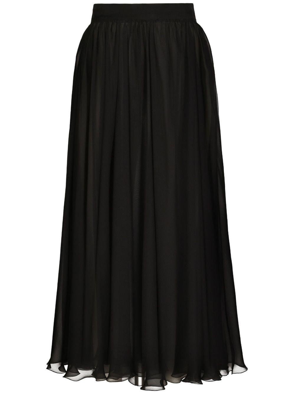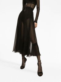 high-waisted pleated midi skirt Highlights - Black - Chiffon - High-waisted - Semi-sheer construction - Fully pleated - Flared hem - Mid-length Made in Italy Composition Lining: Silk 91%, Elastane 9% Outer: Silk 100% Washing instructions Read Manufacturer Guidelines
