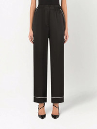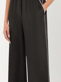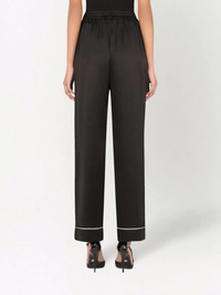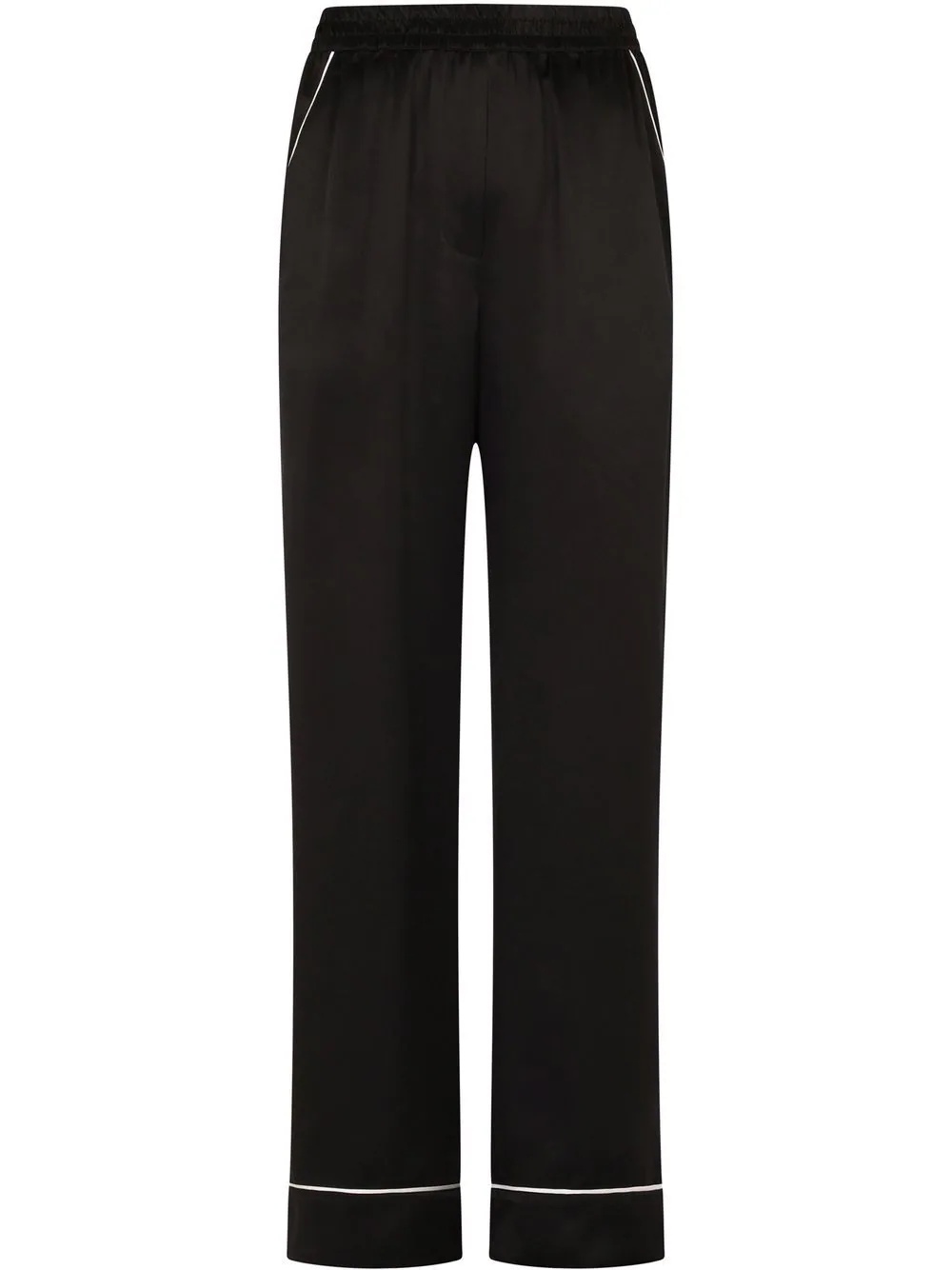 contrast-trim satin pajama bottoms Highlights - Black/white - Silk - Contrasting trim - High-waisted - Flared - Cropped leg - Elasticated waistband - Slip pockets to the sides Made in Italy Composition Silk 100% SIZE & FIT Measurement INSIDE LEG 30.31 in(77 cm) WAIST 27.55 in(70 cm) HIPS 41.73 in(106 cm)