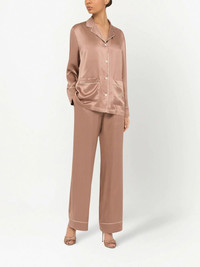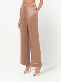 contrast-trim satin pajama bottoms Highlights - Blush pink - Silk - Piped-trim detailing - High waist - Elasticated waistband - Two side slit pockets - Straight leg Made in Italy Composition Silk 100% SIZE & FIT Measurement INSIDE LEG 29.52 in(75 cm) HIPS 39.37 in(100 cm) WAIST 24.4 in(62 cm)