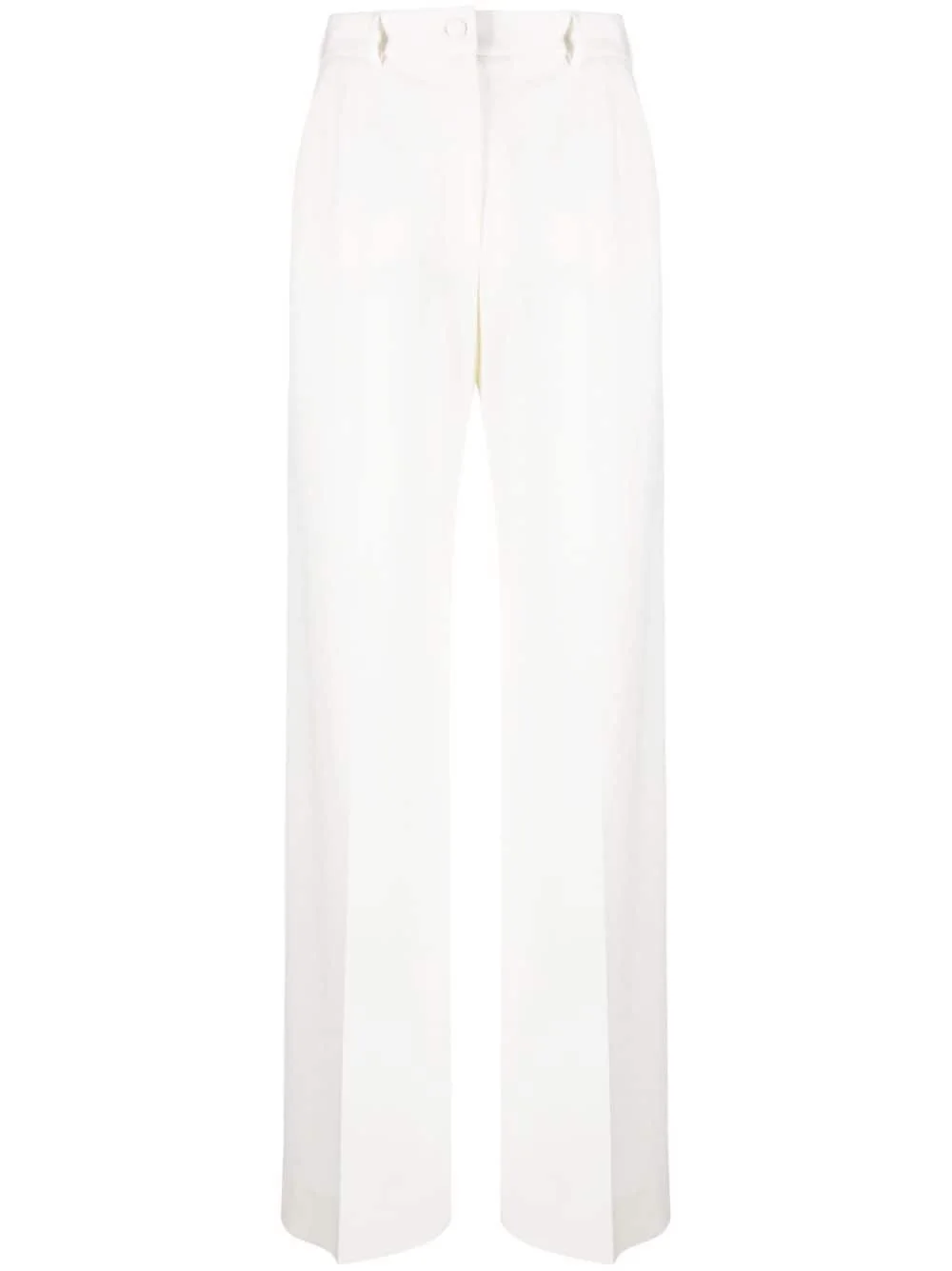 high-waisted straight-leg trousers These white trousers by Dolce & Gabanna are intended to be timeless. Crafted from a luxurious virgin wool blend, they lend a formal high-waisted, straight-leg silhouette that imbues a sense of Italian classicism. Highlights - White - Virgin wool blend - High-waisted - Belt loops - Front button fastening - Two side slit pockets - Two rear pockets - Straight leg - Wide leg Made in Italy Composition Virgin Wool 92%, Polyamide 6%, Elastane 2% SIZE & FIT Model measurements Height 5 ft 11 in(1.8 m) Bust/Chest 34.25 in(87 cm) Hips 35.82 in(91 cm) Waist 24.8 in(63 cm) FittingInformation Designed with a wide-leg cut, these trousers allow for a close fit at the waist and offer a loose and roomy fit over the leg Made from a midweight stretch fabric, this piece offers elasticity and flexibility when worn This piece fits true to size – take your usual size