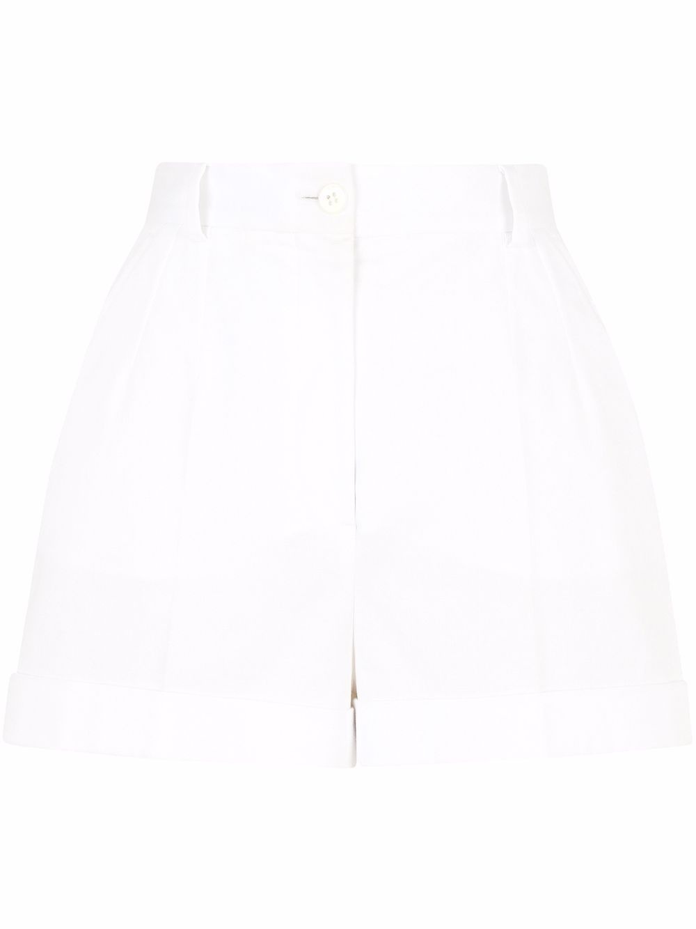 tailored gabardine shorts Highlights - Optical white - Stretch-cotton - High waist - Button fly fastening - Belt loops - Two side slit pockets - Turn-up hem Made in Italy Composition Cotton 97%, Spandex/Elastane 3% SIZE & FIT Measurement FRONT RISE 12.59 in(32 cm)