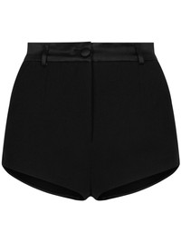high-waisted tailored shorts Highlights - Black - Virgin wool blend - Stretch-design - Satin trim - Tailored design - High-waisted - Concealed fly and button fastening - Belt loops - Two side slit pockets - Two rear welt pockets - Thigh-length Made in Italy Composition Virgin Wool 88%, Silk 9%, Polyester 2%, Spandex/Elastane 1%
