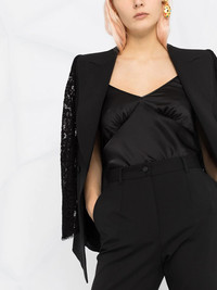 high-waisted tailored trousers Office essentials. A pen, some paper and these black tailored trousers by Dolce & Gabbana... after all you'll be wearing them most days. Surely you'd get away with expensing these, right? Made in Italy Composition Virgin Wool 96%, Spandex/Elastane 4% SIZE & FIT Model measurements Height 5 ft 10 in(1.78 m) Bust/Chest 32.28 in(82 cm) Hips 35.03 in(89 cm) Waist 23.22 in(59 cm) Measurement FRONT RISE 11.02 in(28 cm) HIPS 39.37 in(100 cm) WAIST 29.92 in(76 cm) FittingInformation This piece fits true to size. We recommend you get your regular size Cut for a slim fit Made with a mid-weight fabric Washing instructions Dry Clean Only