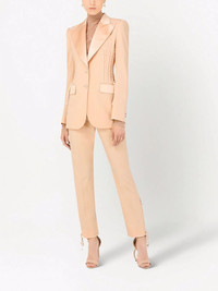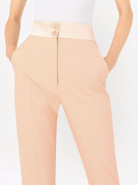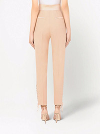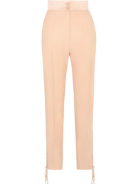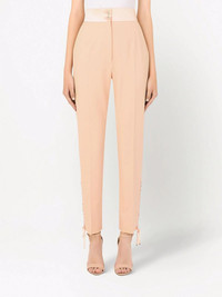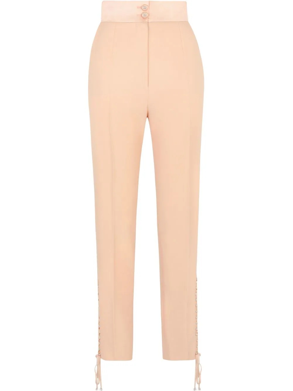 gabardine tuxedo trousers Highlights - Pink - Wool blend - Side tie fastening - High-waisted - Button fastening - Front zip fastening - Two side slit pockets Made in Italy Composition Polyester 47%, Virgin Wool 34%, Silk 16%, Spandex/Elastane 3%