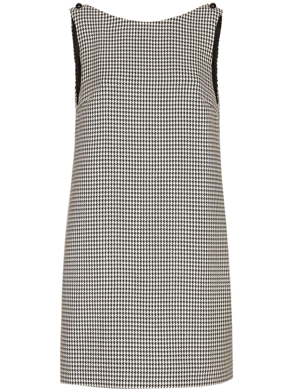 houndstooth-pattern dress Highlights - White/black - Virgin wool blend - Houndstooth pattern - Decorative button detailing - Round neck - Concealed rear zip fastening - Sleeveless - Scoop back - Two side inset pockets - Straight hem - Thigh-length - Stretch-silk lining Made in Italy Composition Virgin Wool 55%, Viscose 45%