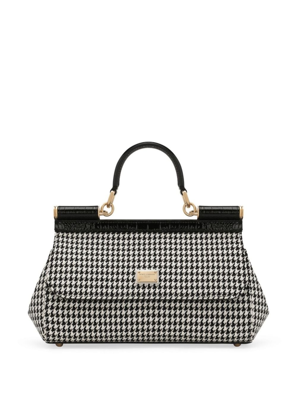 houndstooth tote bag Highlights - Black/white - Houndstooth pattern - Detachable adjustable waist strap - Magnetic fastening - Single top handle - Logo plaque - Gold-tone hardware Made in Italy Composition Lining: CALFSKIN 70%, Cotton 25%, Acrylic 5% Outer: Virgin Wool 45%, Viscose 30%, CALFSKIN 25%