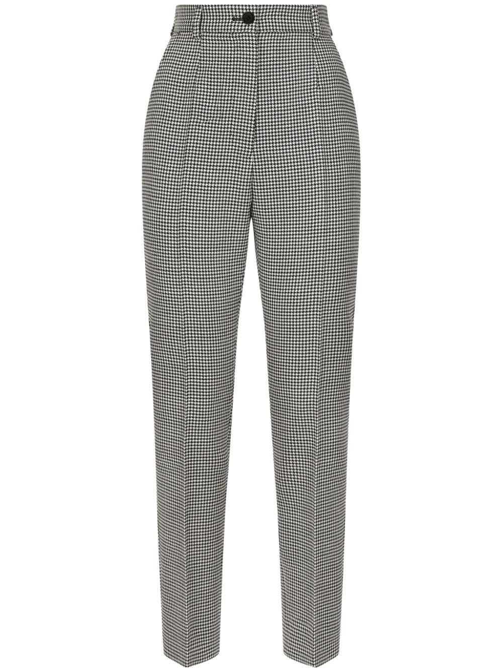 houndstooth wool trousers Highlights - Brown/cream white - Virgin wool - Houndstooth print - High-rise - Belt loops - Front button and zip fastening - Slip pockets to the sides - Two rear welt pockets - Pressed crease - Tapered leg Made in Italy Composition Virgin Wool 100%