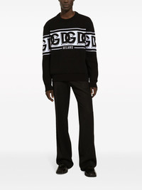 intarsia knit-logo crew-neck jumper Highlights - Black - Intarsia-knit logo - Crew neck - Long sleeves - Ribbed cuffs and hem - Straight hem Made in Italy Composition Polyester 50%, Virgin Wool 48%, Elastane 1%, Polyamide 1% Washing instructions Read Manufacturer Guidelines