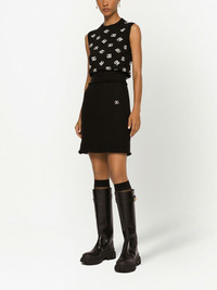 intarsia-logo knitted vest top Dolce & Gabbana's iconic DG logo appears in an intarsia pattern on this crew-neck vest, lending the knitted piece a modern branded finish. Made in Italy Composition Virgin Wool 81%, Silk 19% Washing instructions Read Manufacturer Guidelines