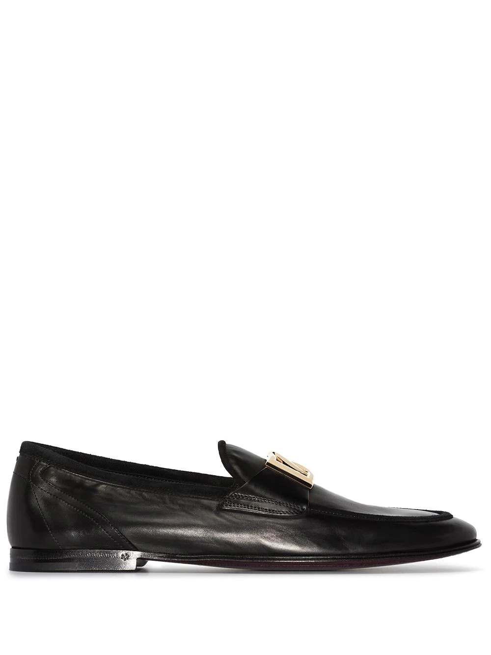 Interlocking DG-plaque leather loafers With a classic construction, these black loafers from Dolce & Gabbana show an exquisite and instantly recognisable detail: an interlocking DG plaque in gold-tone hardware. Made in Italy Composition Outer: Leather 100% Lining: Leather 100% Sole: Leather 100% SIZE & FIT Model measurements Height 6 ft 2 in(1.88 m) Bust/Chest 37.4 in(95 cm) Hips 37.79 in(96 cm) Waist 30.31 in(77 cm) FittingInformation This piece fits true to size. We recommend you get your regular size Measurement HEEL 0.59 in(1.5 cm)