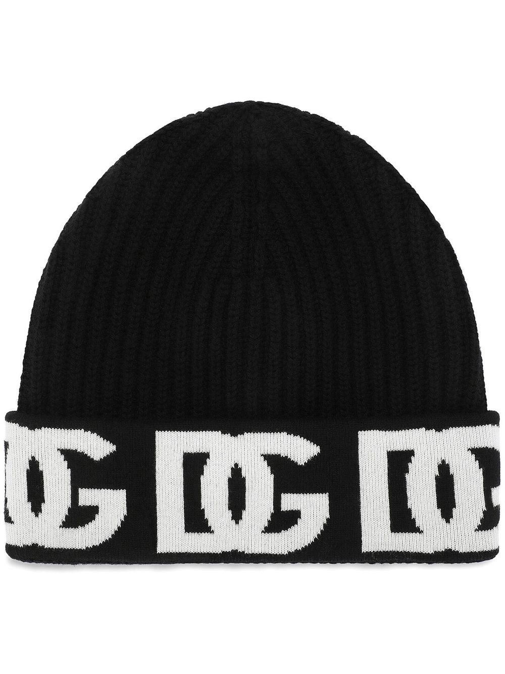 jacquard logo beanie hat black/white cashmere blend ribbed knit monogram jacquard turn-up brim Made in Italy Composition Cashmere 92%, Nylon 6%, Elastane 2%