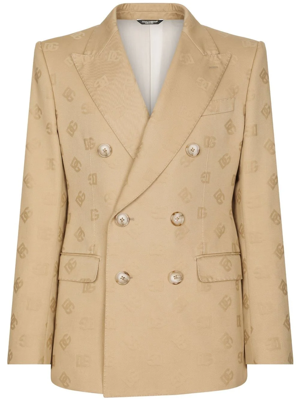 jacquard logo motif blazer beige cotton jacquard logo motif peak lapels double-breasted button fastening long sleeves chest welt pocket two front flap pockets Made in Italy Composition Outer: Cotton 100% Lining: Cotton 100% Washing instructions Read Manufacturer Guidelines