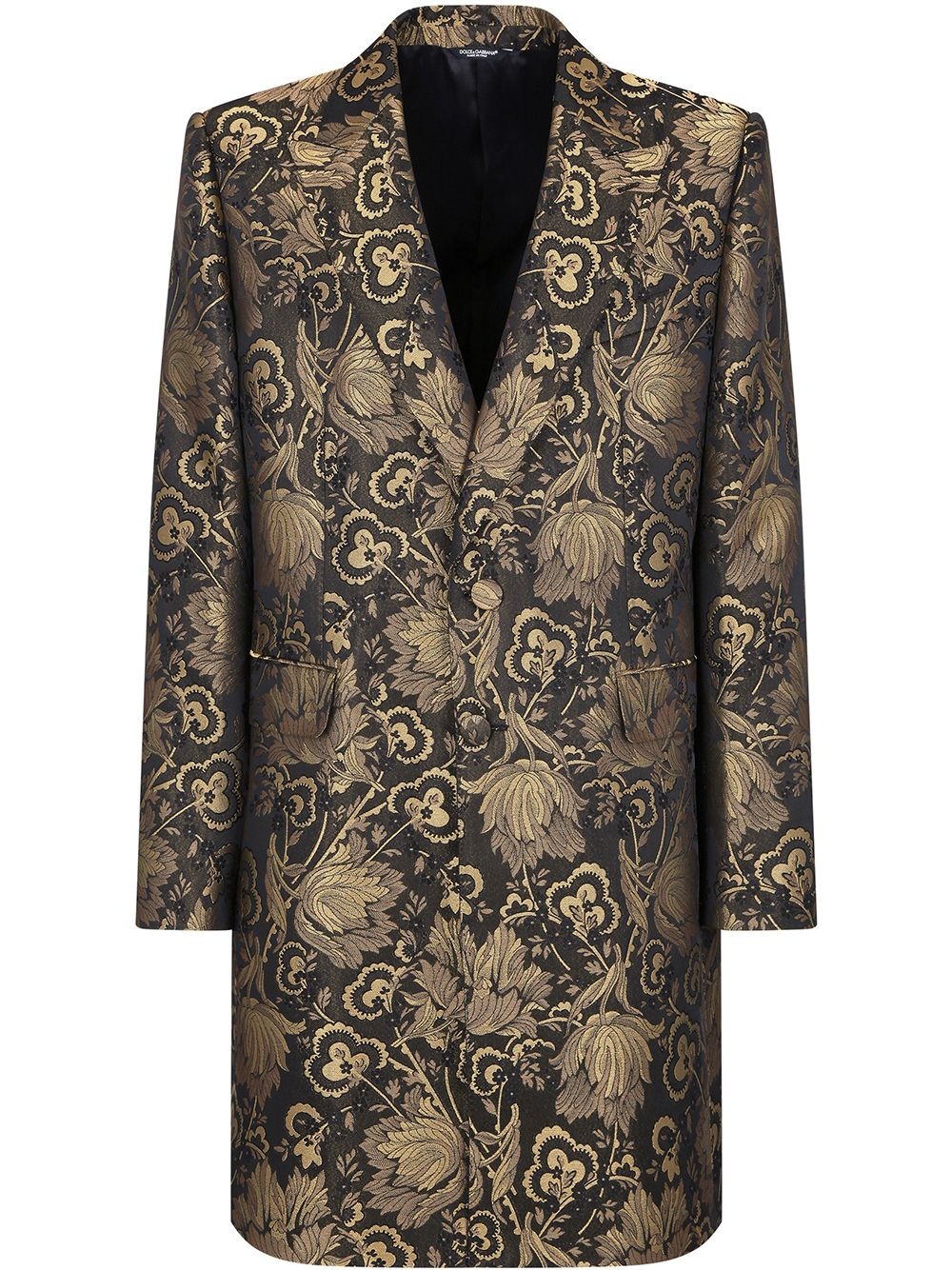floral-jacquard lame single-breasted coat Just because the weather is less than glorious, doesn't mean that your outfit has to be. In this single-breasted jacquard coat from Dolce & Gabbana, this piece is here to keep you feeling warm and looking hot. Wrap up. Highlights - Black - Patterned jacquard - Peak lapels - Front button fastening - Two front welt pockets - Long sleeves Made in Italy Composition Rayon 36%, Polyester 34%, Acetate 16%, Polyester film fiber 14% Washing instructions Dry Clean Only