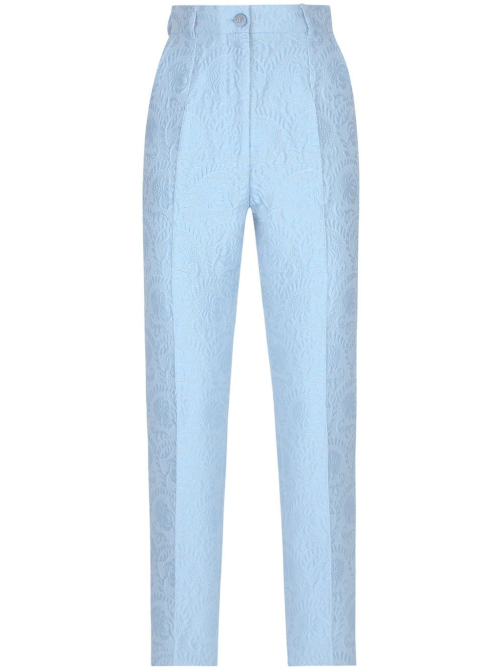 DNA jacquard tailored trousers Highlights - Light blue - Cotton blend - Pressed crease - Patterned jacquard - Logo engraved button - Button fastening - Concealed front zip fastening - Two rear jetted pockets Made in Italy Composition Cotton 64%, Polyester 23%, Silk 13%
