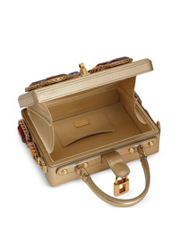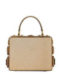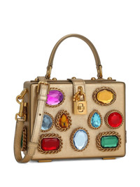 jewel-embellished box tote bag Highlights - Gold - Leather body - Top handle - Multicoloured jewel embellishments - Gold-tone clasp - Detachable shoulder strap - Please refer to the size & fit tab to learn more about this item's dimensions. Made in Italy Composition Wood 100%, CALFSKIN 100% SIZE & FIT Measurement DEPTH 2.75 in(7 cm) HEIGHT 5.7 in(14.5 cm) WIDTH 7.48 in(19 cm)