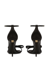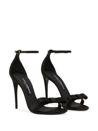 Keira 105mm satin sandals A testament to Dolce & Gabbana's Italian glamour, these Keira sandals are decorated with a bow applique on the front strap. They're crafted from black satin with a towering stiletto heel that's elevated by a gold-tone version of the label's DG logo. Highlights - Black - Satin finish - Open toe - Single toe strap - Bow detailing - Buckle-fastening ankle strap - Branded leather insole - High stiletto heel - Branded leather sole Made in Italy Composition Sole: Leather 100% Outer: Rayon 65%, Silk 32%, Goat Skin 3% Lining: Leather 100%