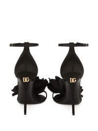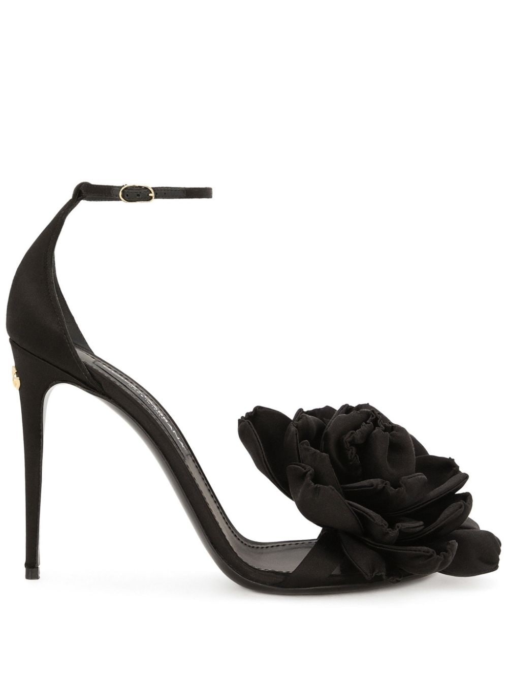 Keira floral-applique satin sandals A brand's signature style, Dolce & Gabbana's Keira sandals are back for the new season in an all-black design with a satin finish. Crafted from leather, they're highlighted by a floral applique at the toe. Highlights - Black - Calf leather - Satin finish - Floral applique - Open toe - Buckle-fastening ankle strap - Branded insole - High heel Made in Italy Composition Outer: Rayon 65%, Silk 32%, Goat Skin 3% Sole: Leather 100% Lining: Leather 100% SIZE & FIT Measurement HEEL 4.13 in(10.5 cm)