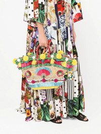 Kendra embroidered woven basket bag Daydreaming about your next holiday already? In the meantime, allow this Kendra tassel-trim straw bag from Dolce & Gabbana to transport you back to sunnier and happier times. No passport necessary. Highlights - Beige/multicolour - Straw - Pompom detail - Tassel detail - Gem embellishment - Crocodile leather details - Two top handles - Top tie fastening - Main compartment - Internal zip pocket - Internal slip pocket - Internal logo stamp - Full lining - This piece comes complete with a protective dust bag. - This item comes from our partner boutiques in a variety of countries and cannot be shipped outside its region (either us, uae, or the eu & uk). please check the country of origin in the shipping & free returns tab or your shopping bag to make sure it can be delivered to your location. Made in Italy Composition Outer: Straw 60%, Rayon 20%, Crocodile Leather 10%, Metallic Fibre 5%, Nylon 5% Lining: Cotton 90%, Crocodile Leather 10%