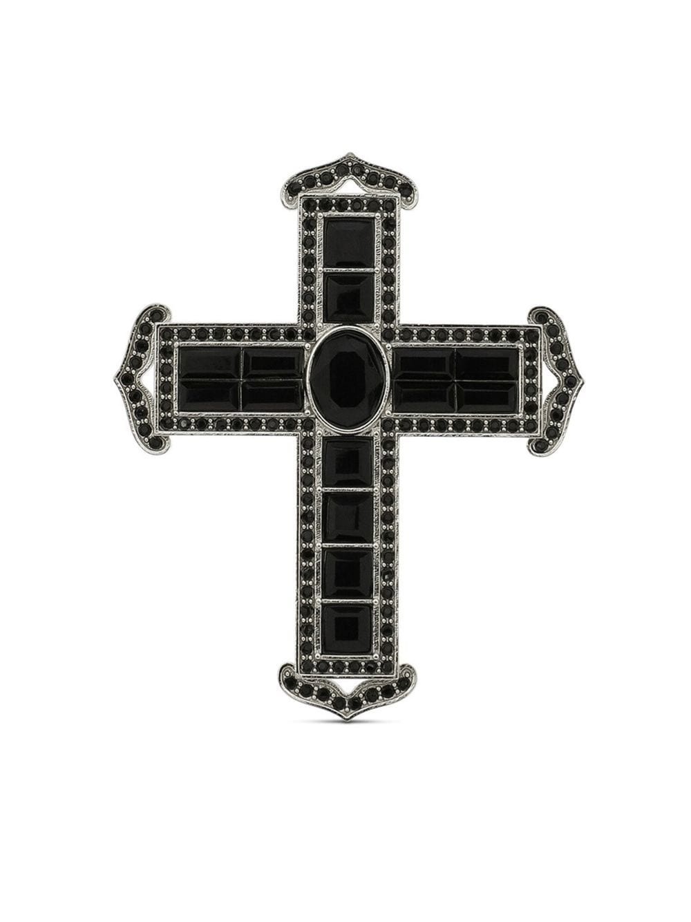 KIM DOLCE&GABBANA rhinestone-embellished cross ring Highlights - Black/silver-tone - Brass - Cross charm - Crystal embellishment Made in Italy