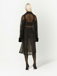 KIM DOLCE&GABBANA organza trench coat Highlights - Black - Sheer - Rounded collar - Notched lapels - Front button fastening - Number patch to the sleeve - Two front patch pockets - Long sleeves - Faux-fur trim Made in Italy Composition Nylon 90%, Polyester 10% SIZE & FIT Measurement SLEEVE LENGTH 20.47 in(52 cm) LENGTH 42.91 in(109 cm) WAIST 39.37 in(100 cm) BUST 34.64 in(88 cm)