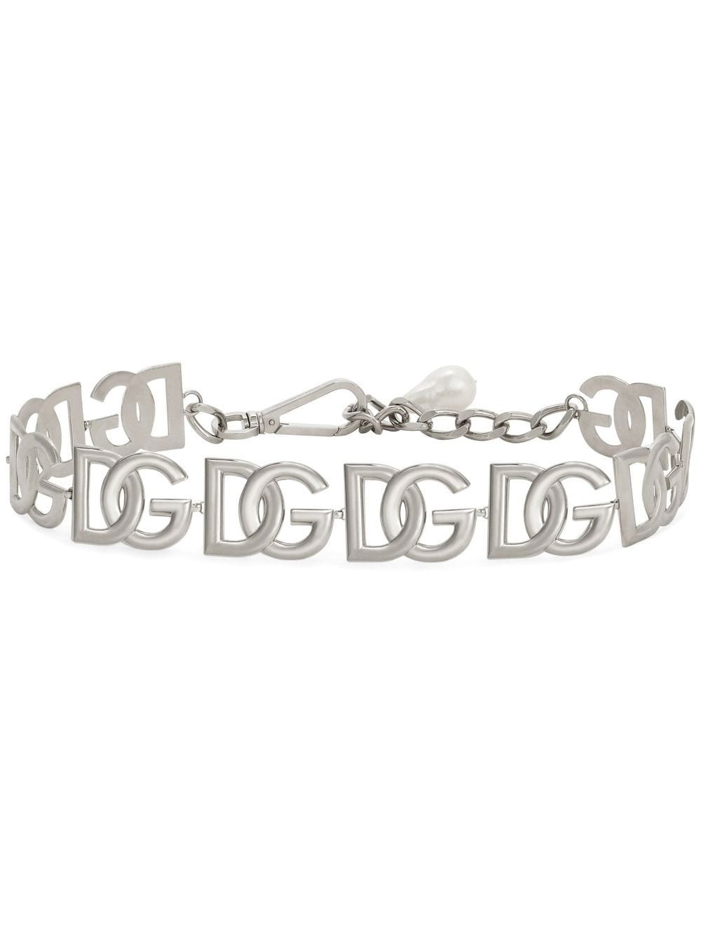 KIM DOLCE&GABBANA DG-logo chain belt Highlights - Silver - Silver-tone logo lettering - Pearl detail - Adjustable fit - Lobster claw fastening Made in Italy Composition Brass 90%, Zamak 5%, Plexiglass 5%