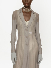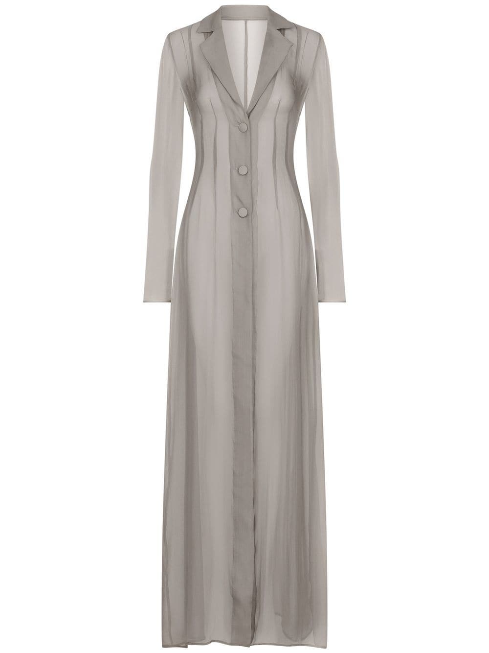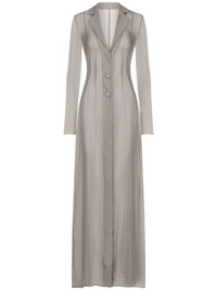 KIM DOLCE&GABBANA silk duster coat Highlights - Light grey - Silk blend - Classic lapels - Front button fastening - Long sleeves - Long length Made in Italy Composition Silk 92%, Elastane 8%