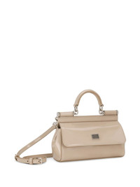 KIM DOLCE&GABBANA small Sicily handbag Highlights - Blush beige - Calf leather - Polished finish - Palladium-plated hardware - Silver-tone logo plaque - Foldover top with magnetic fastening - Single rolled top handle - Adjustable detachable shoulder strap - Main compartment - Internal slip pocket - Internal logo stamp - Leopard print lining - This piece comes complete with a protective dust bag. Made in Italy Composition Outer: Calf Leather 100% Lining: Calf Leather 100%