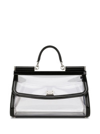 KIM DOLCE&GABBANA medium Sicily top-handle bag Highlights - Black - Transparent design - Calf leather trim - Polished finish - Palladium-plated hardware - Logo plaque - Single rolled top handle - Adjustable detachable shoulder strap - Foldover top with magnetic fastening - Main compartment - This piece comes complete with a protective dust bag. Made in Italy Composition Outer: PVC 65%, Calf Leather 35% Lining: PVC 80%, Calf Leather 20%