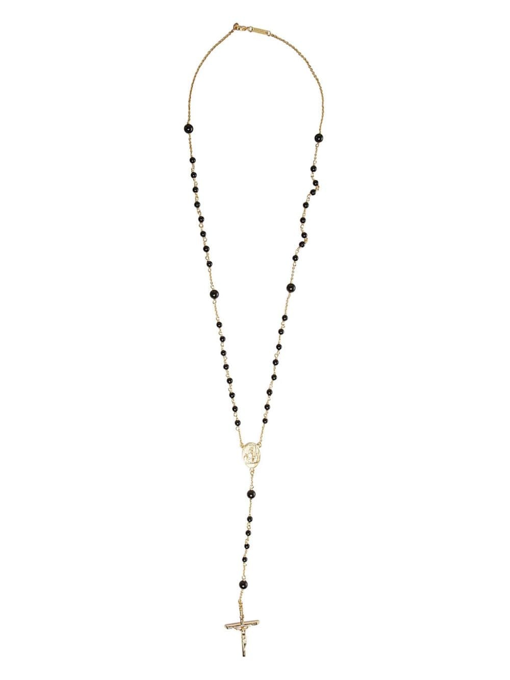 Kim rosary Highlights - Black - Gold plated - Polished finish - Bead detailing - Delicate chain - Cross charm - Engraved logo - Lobster claw fastening Made in Italy SIZE & FIT Measurement Length when open 25.19 in(64 cm) PENDANT LENGTH 1.65 in(4.2 cm) PENDANT WIDTH 0.94 in(2.4 cm) WIDTH 0.03 in(0.1 cm)