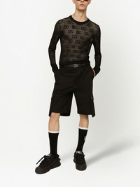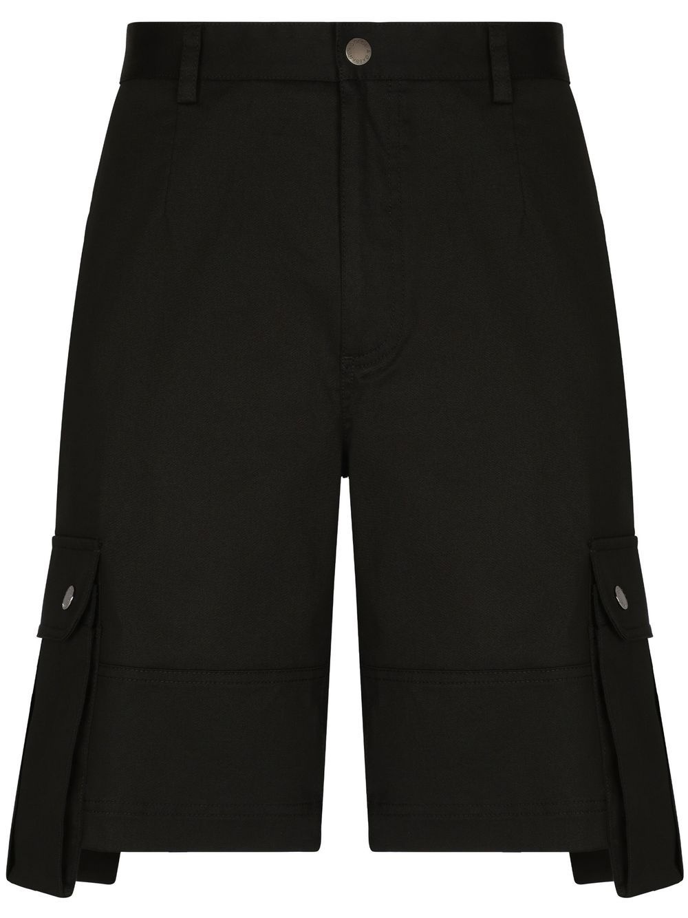 knee-length cotton Bermuda shorts black stretch-cotton belt loops front button and zip fastening knee-length two side slit pockets two side flap pockets two rear flap pockets Made in Italy Composition Cotton 97%, Spandex/Elastane 3%