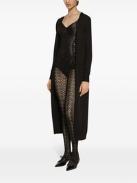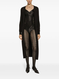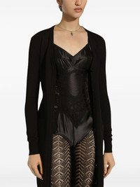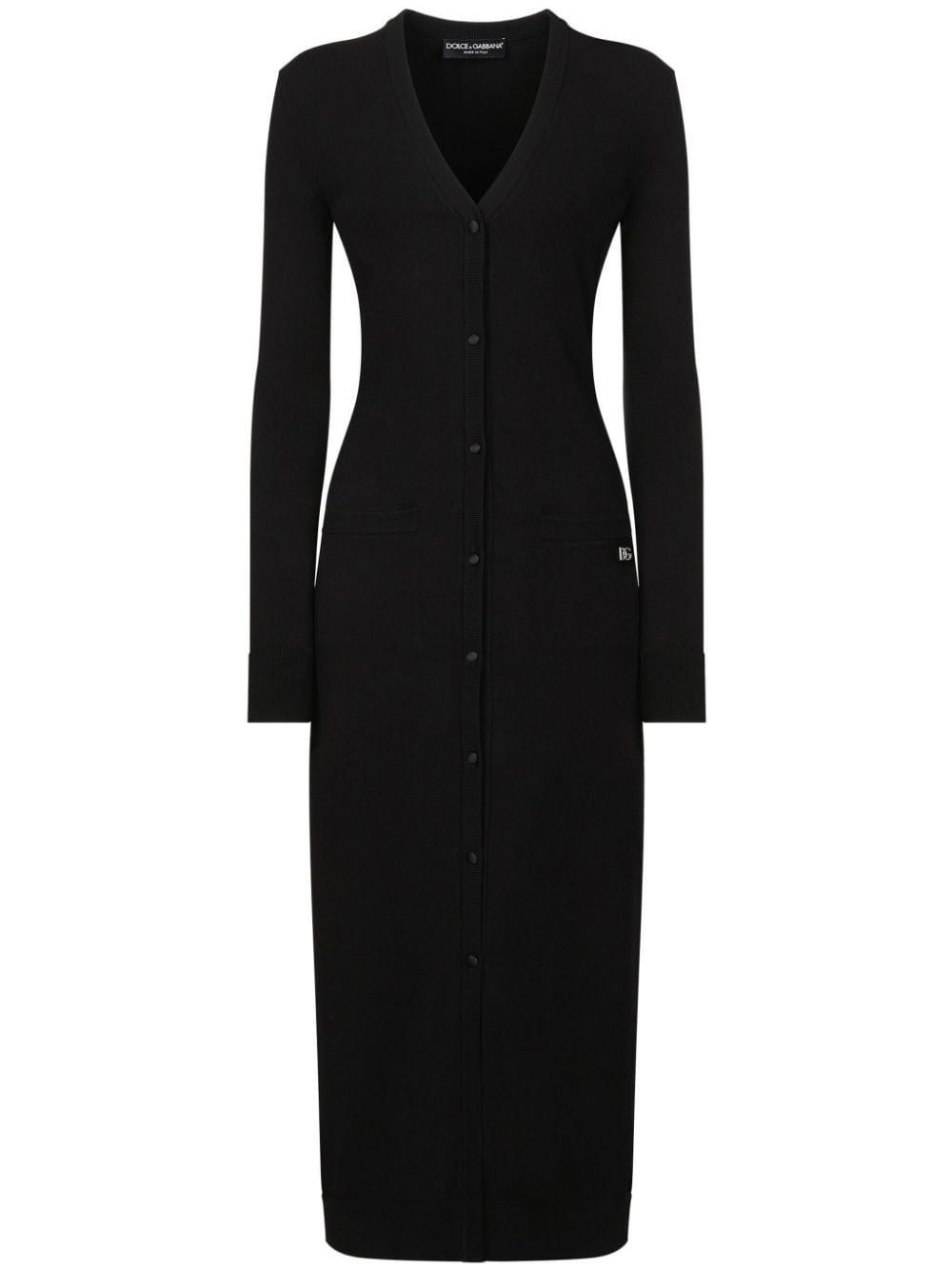 knitted cardi-coat Highlights - Black - Ribbed hem - Embroidered logo to the front - Press-stud fastening - V-neck - Long sleeves Made in Italy Composition Viscose 71%, Polyester 15%, Polyamide 8%, Spandex/Elastane 6%