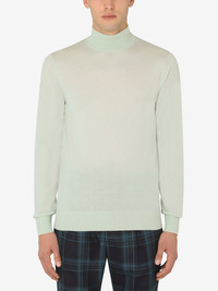 knitted roll-neck jumper Go back to basics. This light green virgin wool knitted jumper from Dolce & Gabbana takes staples to a new level of luxury. It's not every day you find the perfect knit. Made in Italy Composition Virgin Wool 100% SIZE & FIT Measurement Shoulder Width 18.11 in(46 cm) WAIST 41.73 in(106 cm) Washing instructions Dry Clean Only
