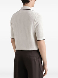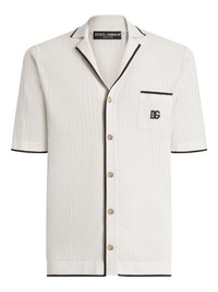knitted short-sleeve shirt Highlights - Ivory white - Ribbed texture - Logo patch at chest - Contrasting piping - Button-down closure Made in Italy Composition Cotton 100% Washing instructions Read Manufacturer Guidelines