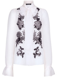 Organza pussy-bow shirt with lace appliqués