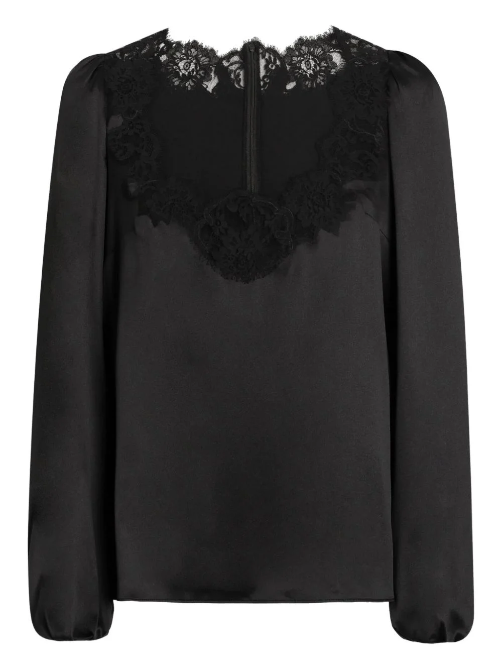 lace-detail top Highlights - Black - Lace detail - Long sleeves - Zip fastening Made in Italy Composition Silk 88%, Cotton 7%, Polyamide 3%, Elastane 2% Washing instructions Read Manufacturer Guidelines