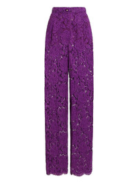 DNA lace-detailing trousers Highlights - Amaranth purple - Concealed front fastening - High-waisted - Flared design Made in Italy Composition Viscose 41%, Cotton 35%, Polyamide 24% Washing instructions Read Manufacturer Guidelines