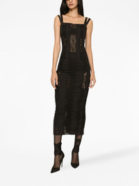 lace-embellished midi dress Beautifully embellished with tonal lace, this black dress encapsulates DOLCE & GABBANA's eye for detail. It features a slim-fitting silhouette that falls to a mid-length and a square neck. Highlights - Black - Cotton-silk blend - Slim cut - Lace embroidery - Square neck - Concealed rear zip fastening - Sleeveless - Straight hem - Mid-length Made in Italy Composition Rayon 47%, Cotton 25%, Nylon 18%, Elastane 5%, Silk 5%