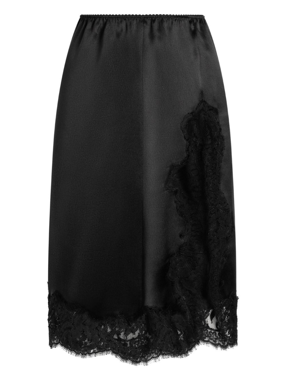 lace-insert satin skirt Highlights - Black - Satin fabric - Lace embellishment - Scalloped lace trim - Side lace panel Made in Italy Composition Silk 80%, Cotton 10%, Polyamide 6%, Viscose 4% Washing instructions Read Manufacturer Guidelines